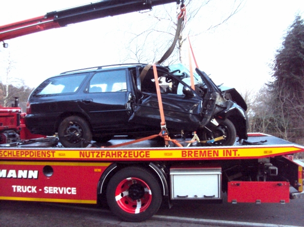 Bergung eines Ford Mondeo nach schwerem Verkehrsunfall. Die Unfallursache war bis dato