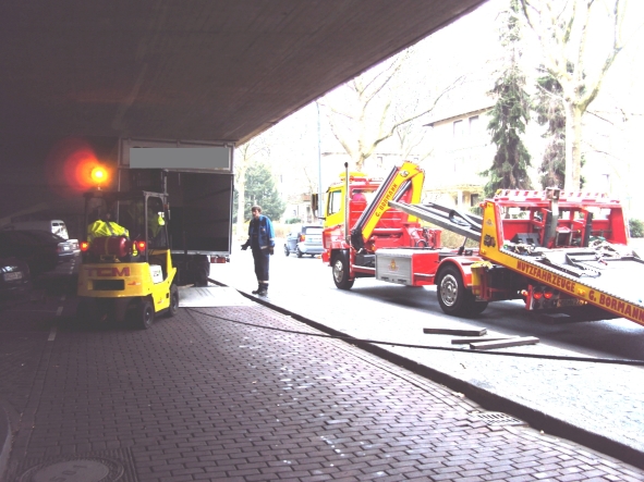 Vom PKW in einem 7,5t Leihwagen umsteigen führt zu solchen Unfällen.
