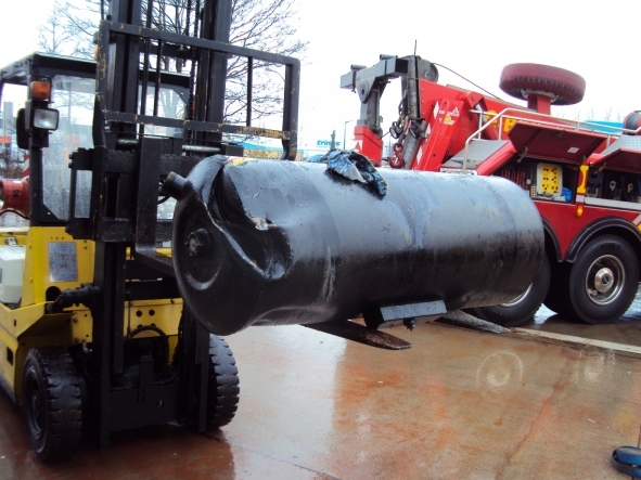 Vorm Aufrichten wurde der defekte Tank des