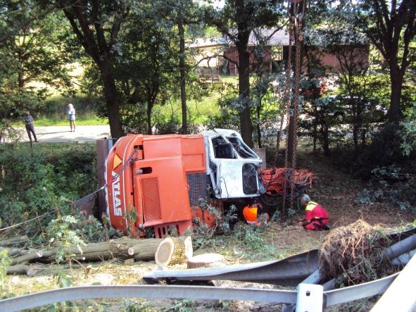 Nachdem der Tieflader an die Seite gehoben wurde,
