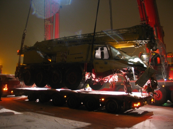 stehen, also beauftragte Mercedes Benz uns, den 48 to schweren Kran einzuschleppen.
